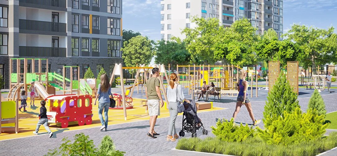 В непосредственной близости будут расположены торговые центры, фитнес-клубы, рестораны, аптеки, салоны красоты. Жильцы будут обеспечены всем необходимым для современной жизни.