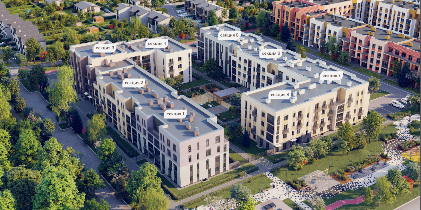 За счет правильного размещения домов, выверенной архитектуры и благоустройства, внутри комплекса всегда тихо, спокойно и безопасно.